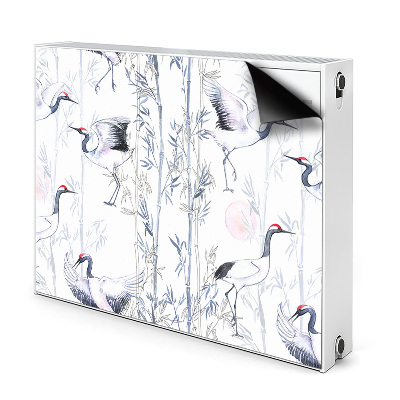 Decorative radiator cover Cranes dance has a magnet on the inside, so you can easily attach it to the radiator. On the surface, there is a selected pattern made using a modern printing method.