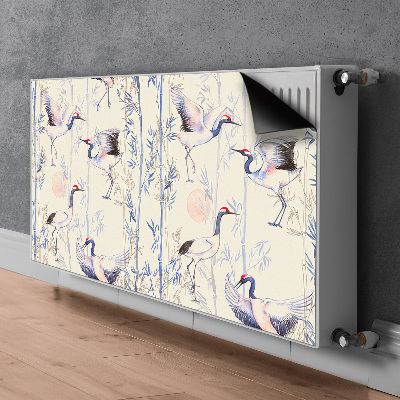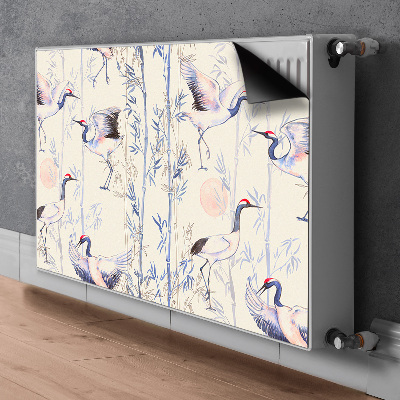 Decorative radiator cover Cranes dance has a magnet on the inside, so you can easily attach it to the radiator. On the surface, there is a selected pattern made using a modern printing method.