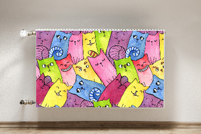 Decorative radiator cover Happy cats is a great way to aesthetically decorate the interior. If you are bored with the look of the classic white radiator, you can now turn it into a beautiful decoration with a beautiful theme including Happy cats. Find out how beautiful the radiator will look, presenting an interesting pattern or a graphic motif that matches the decor of your room. The radiator magnet can also be used as a mat that will hide any damage such as scratches on the radiator's surface. The radiator cover is easy to install and effectively replaces burdensome repairs or renovation procedures.