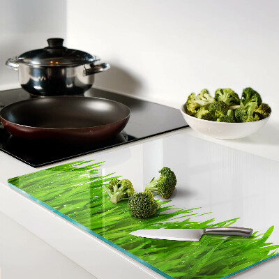 Glass chopping board Green grass with water drops