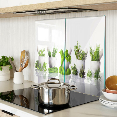 - Glass chopping board Herbs in pots