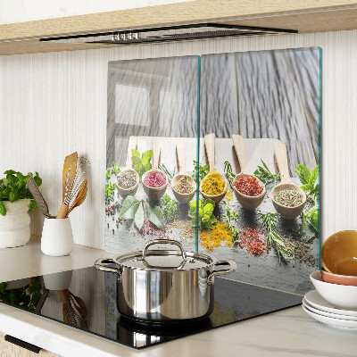 - Glass chopping board Spices and herbs