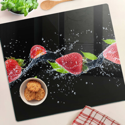 - Glass chopping board Strawberries in water