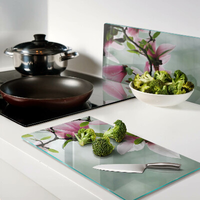 - Glass kitchen board Magnolia flowers against a background of greenery