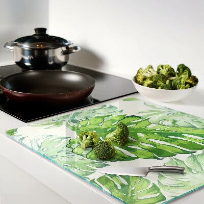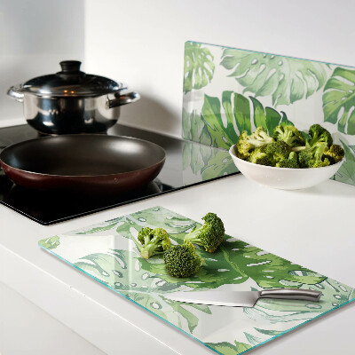 Colorful Monstera leaves on a light background is an embellishment of your kitchen. Made of resilient material it is a helpful and tasteful trifle. It is perfect for cutting, arranging and serving starters in a unusual way. It can also be a dish mat. Monstera leaves on a light background with colorful prints on it, it is a charming idea to add something new and fresh as well as make working in the kitchen easier. While arranging the kitchen, one should think about this decoration because Monstera leaves on a light background is a great choice in each home arranged fashionably.