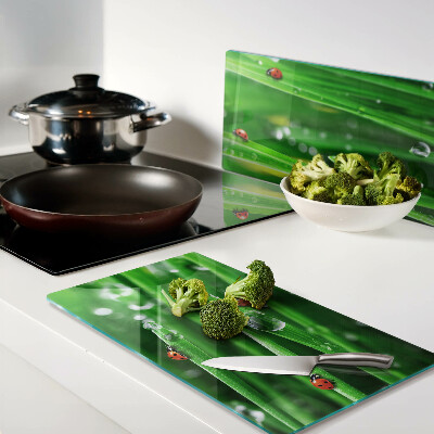 - Glass kitchen board Water drops on grass with ladybugs