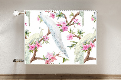 Radiator cover White peacocks has a magnet on the inside, so you can easily attach it to the radiator. On the surface, there is a selected pattern made using a modern printing method.